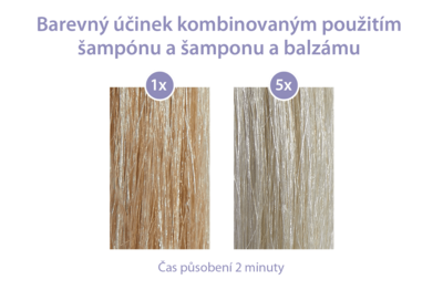 Takzvaný stříbrný šampon obsahuje barevné fialové pigmenty a nechtěný žlutý odstín potlačuje. Při každém umytí se na povrchu vlasu hromadí barevné pigmenty, a tím v blond, zesvětlených nebo šedých vlasech redukují žlutý nádech.