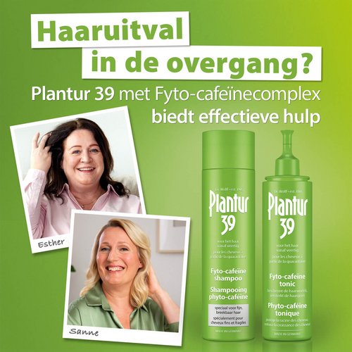 De dagelijkse toevoer van cafeïne is ook belangrijk als je je haar niet elke dag wast. De Plantur 39 Fyto-cafëine Tonic is hiervoor ideaal. Je brengt het eenvoudig aan op de aanzet van je (handdoek-)droge haar en masseert de tonic zachtjes in. Uitspoelen is niet nodig! Cafeïne ondersteunt nog steeds je haargroei, zelfs als je de eerste tekenen van menopauzale haaruitval al hebt opgemerkt.